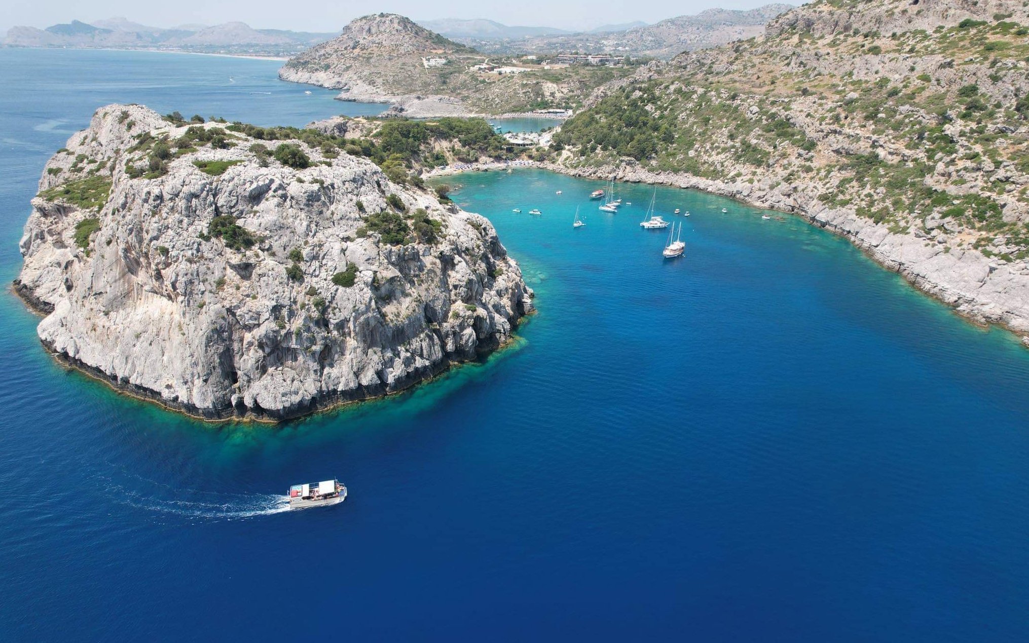 All-inclusive Rhodes cruise with open bar, Greek lunch, and swims at four scenic bays